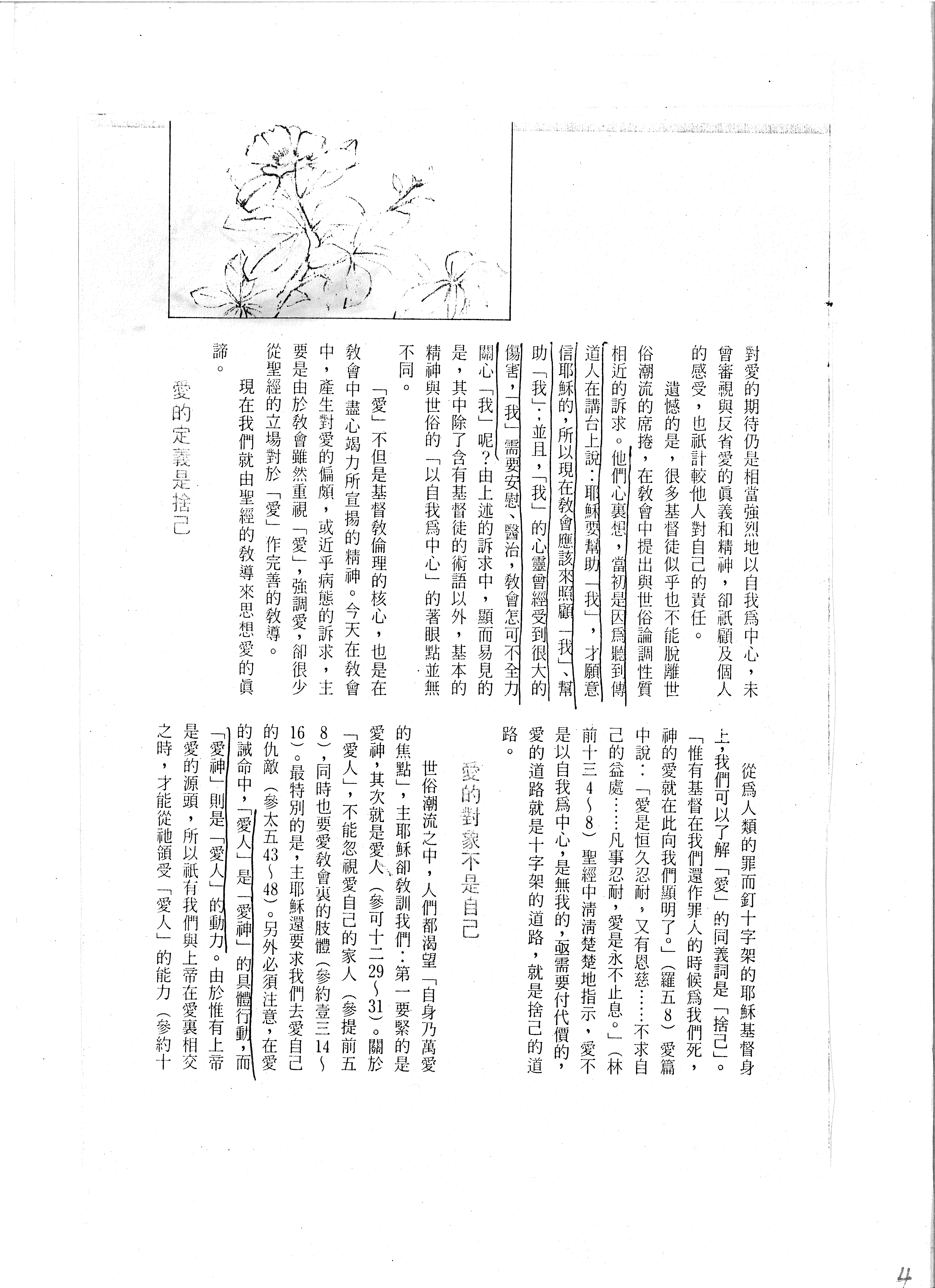 「愛」不但是基督教倫理的核心,也是在敎會中盡心竭力所宣揚的精神。今天在教會中,產生對愛的偏頗,或近乎病態的訴求,主要是由於敎會雖然重視「愛」,強調愛,卻很少從聖經的立場對於「愛」作完善的教導。