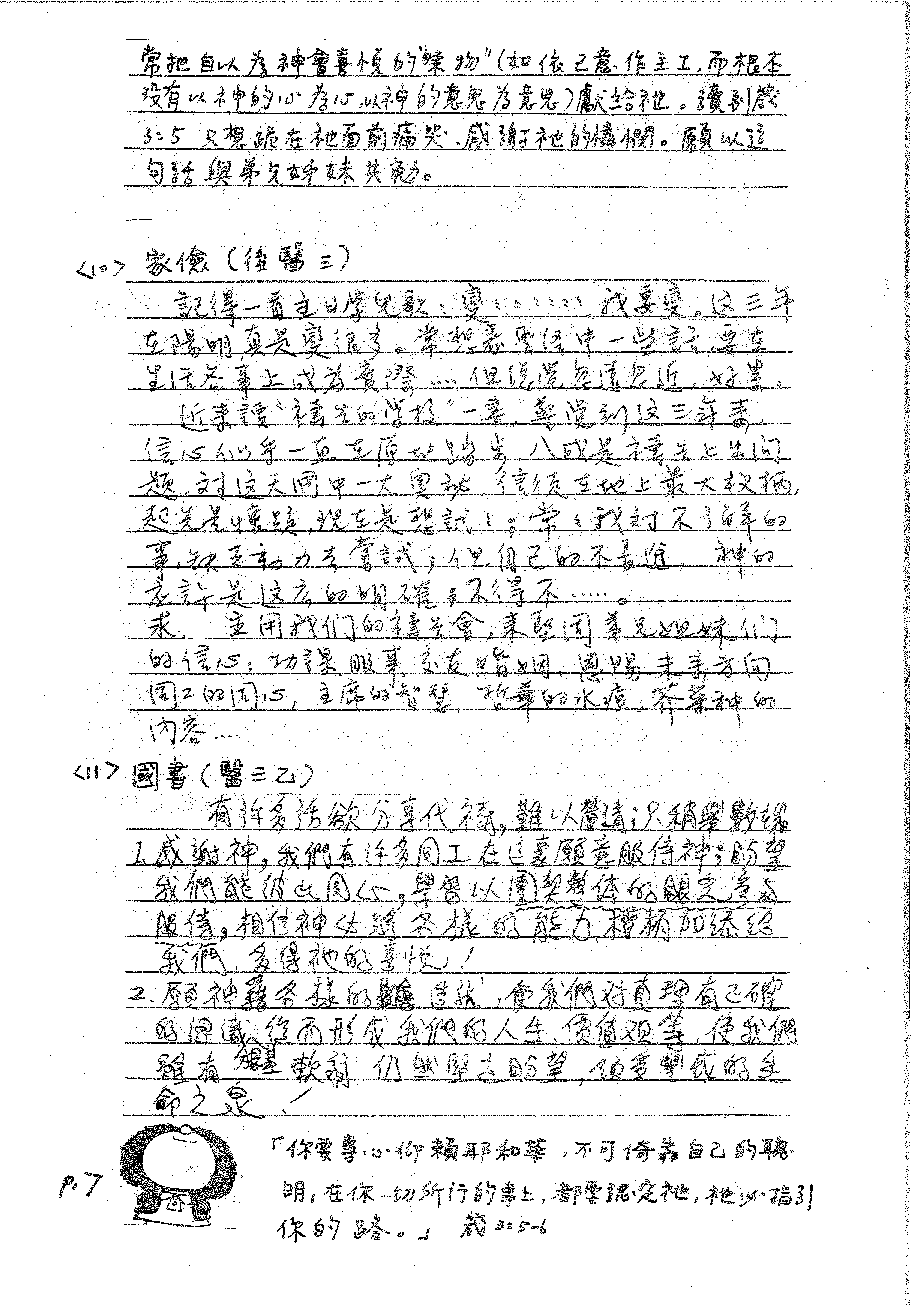 <11> 國書 (醫三乙) 有許多話欲分享代禱,難以釐清;只稍舉數端