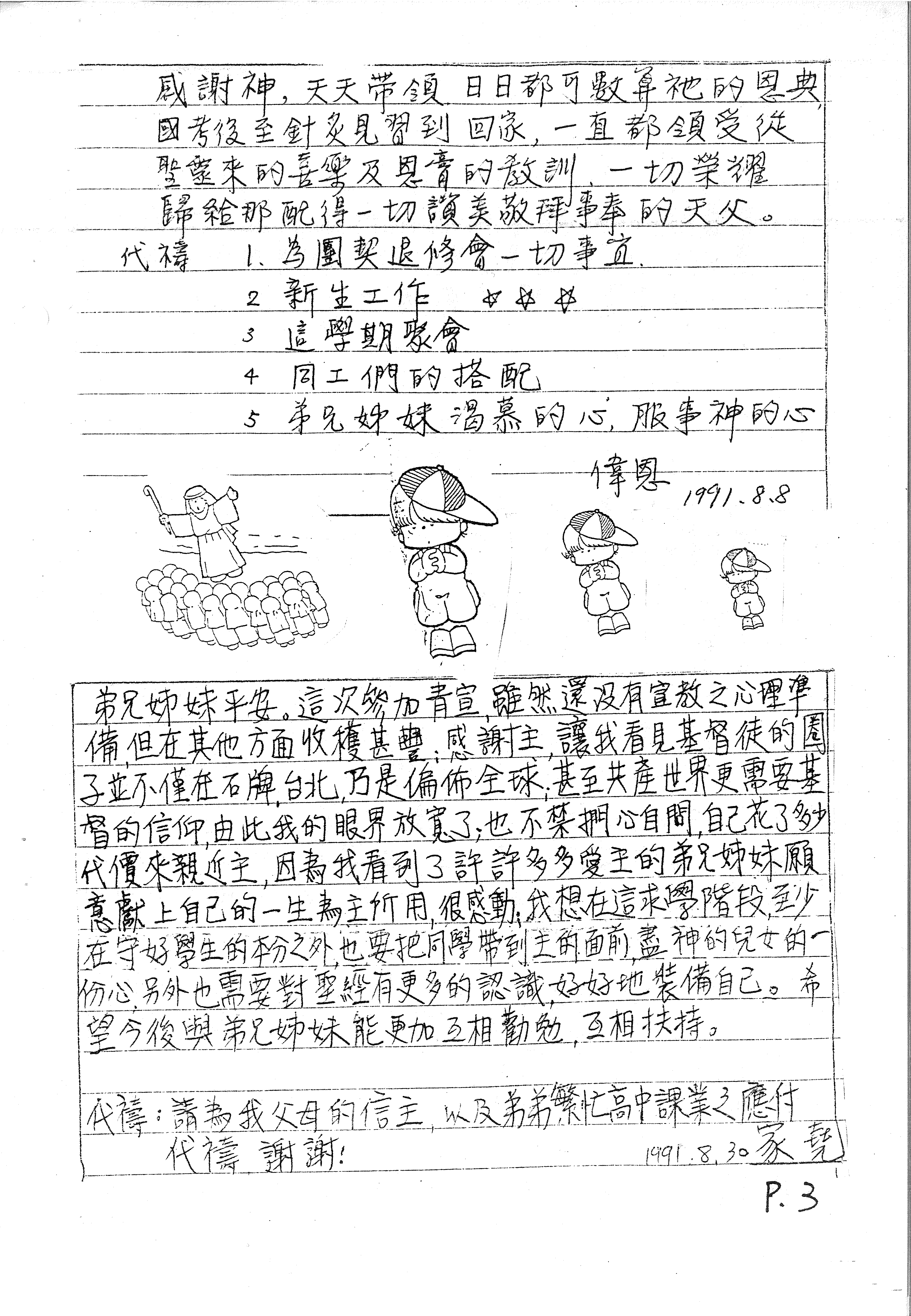 代禱:請為我父母的信主,以及弟弟繁忙高中課業之應付 代禱謝謝! 1991.8.30 家堯