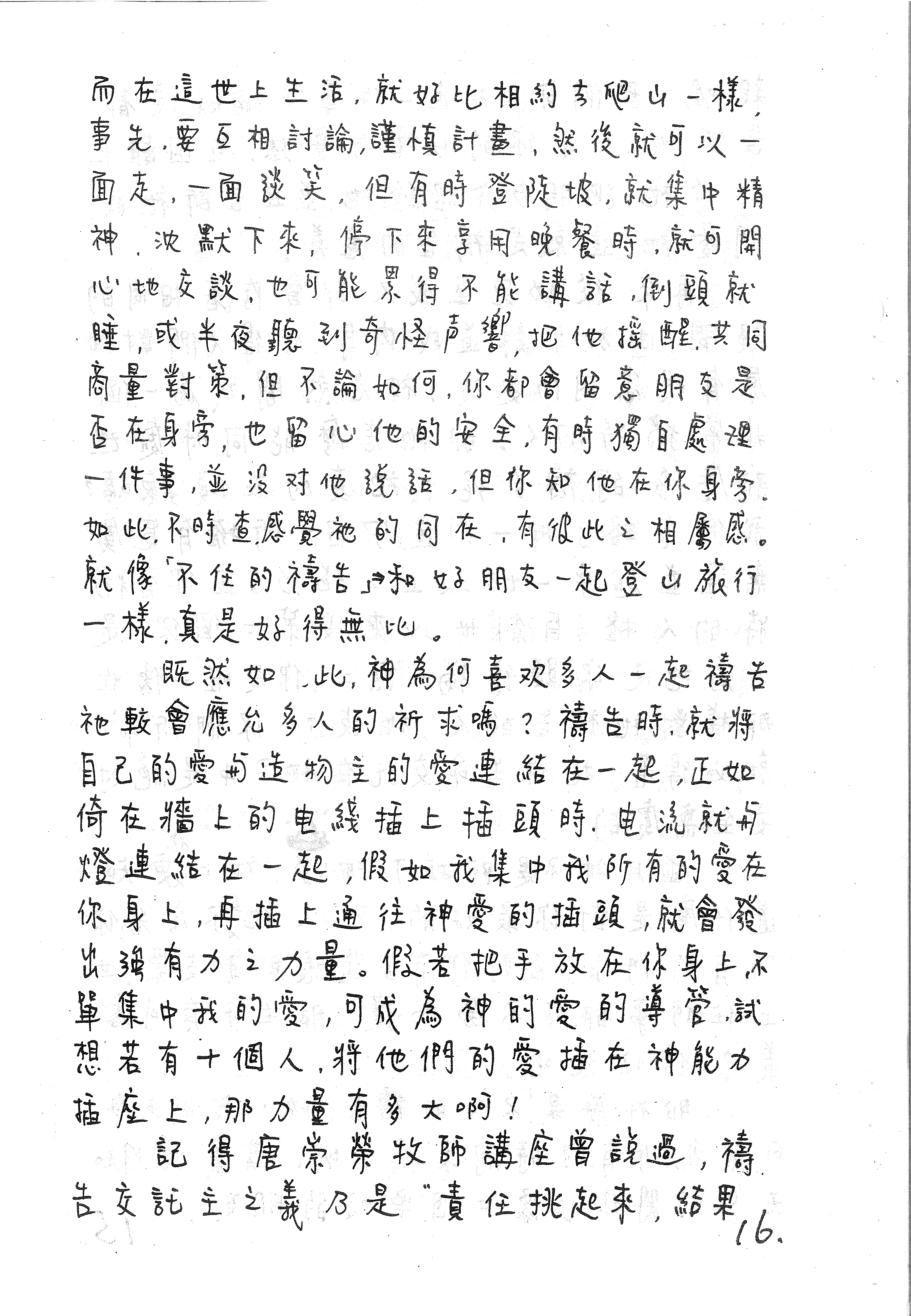 記得屠崇榮牧師講座曾說過,禱告文託主之義乃是「責任挑起來,結果 16.