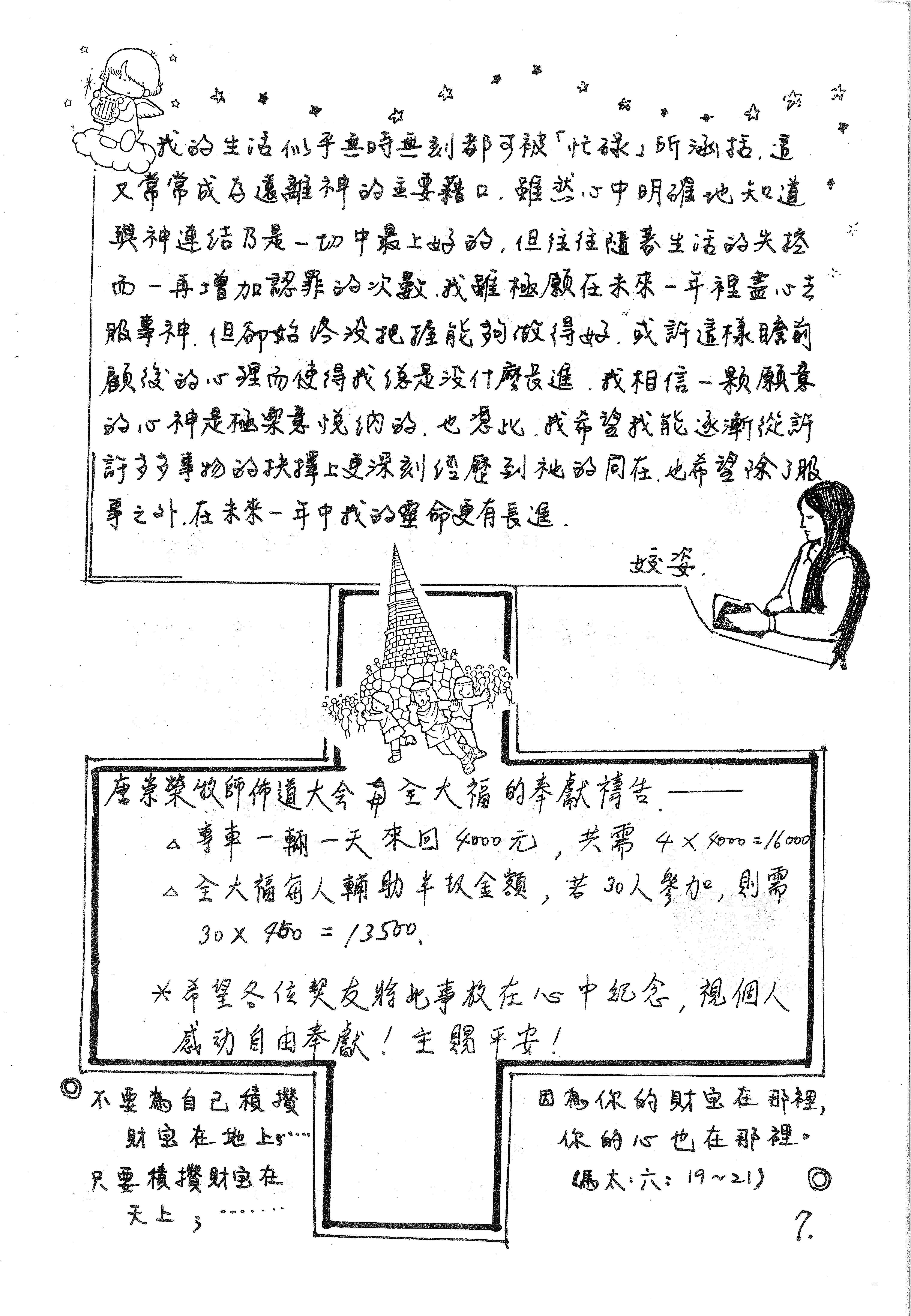 唐崇榮牧師佈道大會為全大福的奉獻禱告—— △ 專車一輛一天來回4000元,共需 4 x 4000 = 16000 △ 全大福每人輔助半故[?]金額,若30人參加,則需 30 x 450 = 13500, *希望各位契友將此事放在心中紀念,視個人感動自由奉獻!主賜平安!