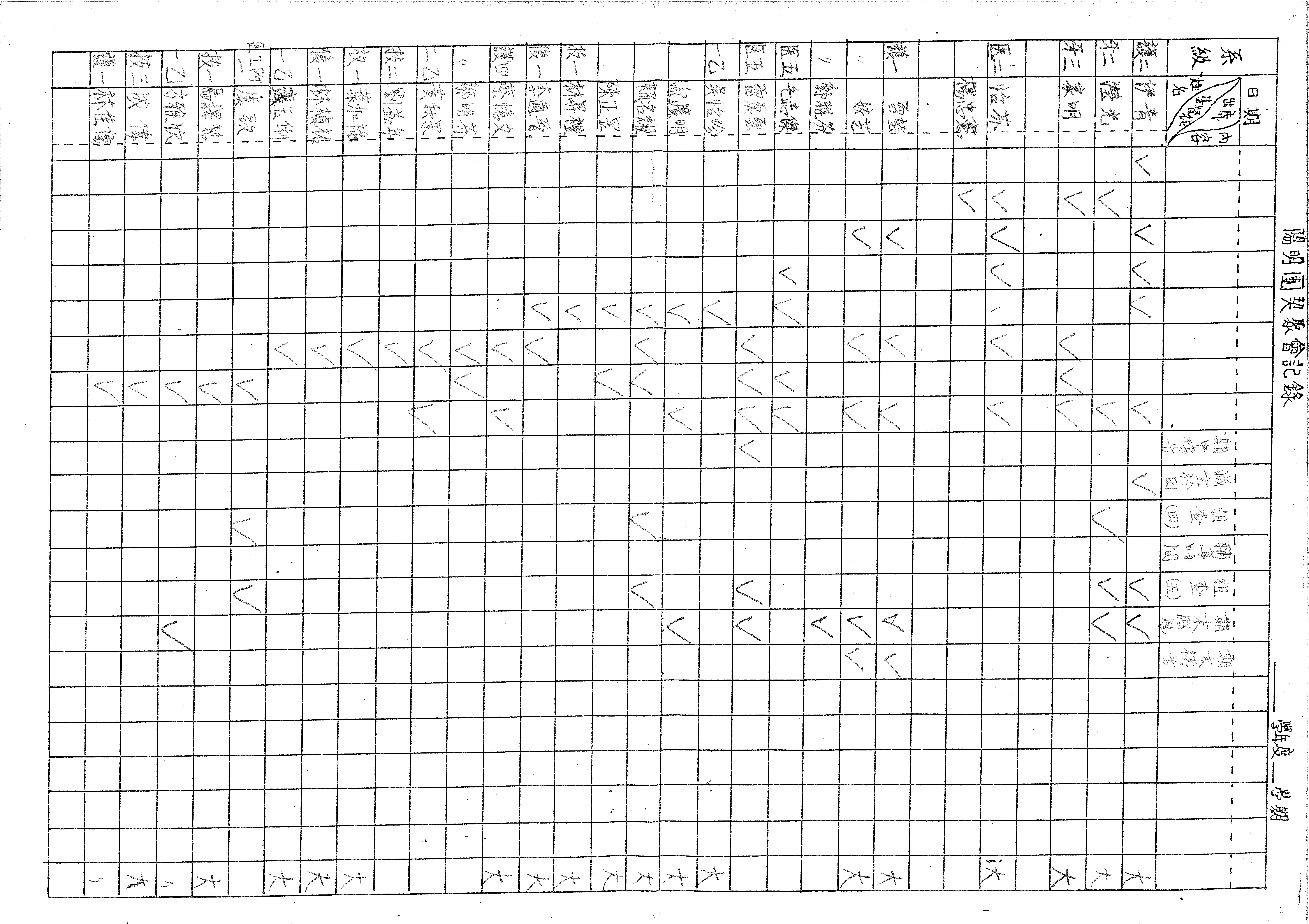 | 系級 | 姓名 | 出席/內容 | ||||||||||||