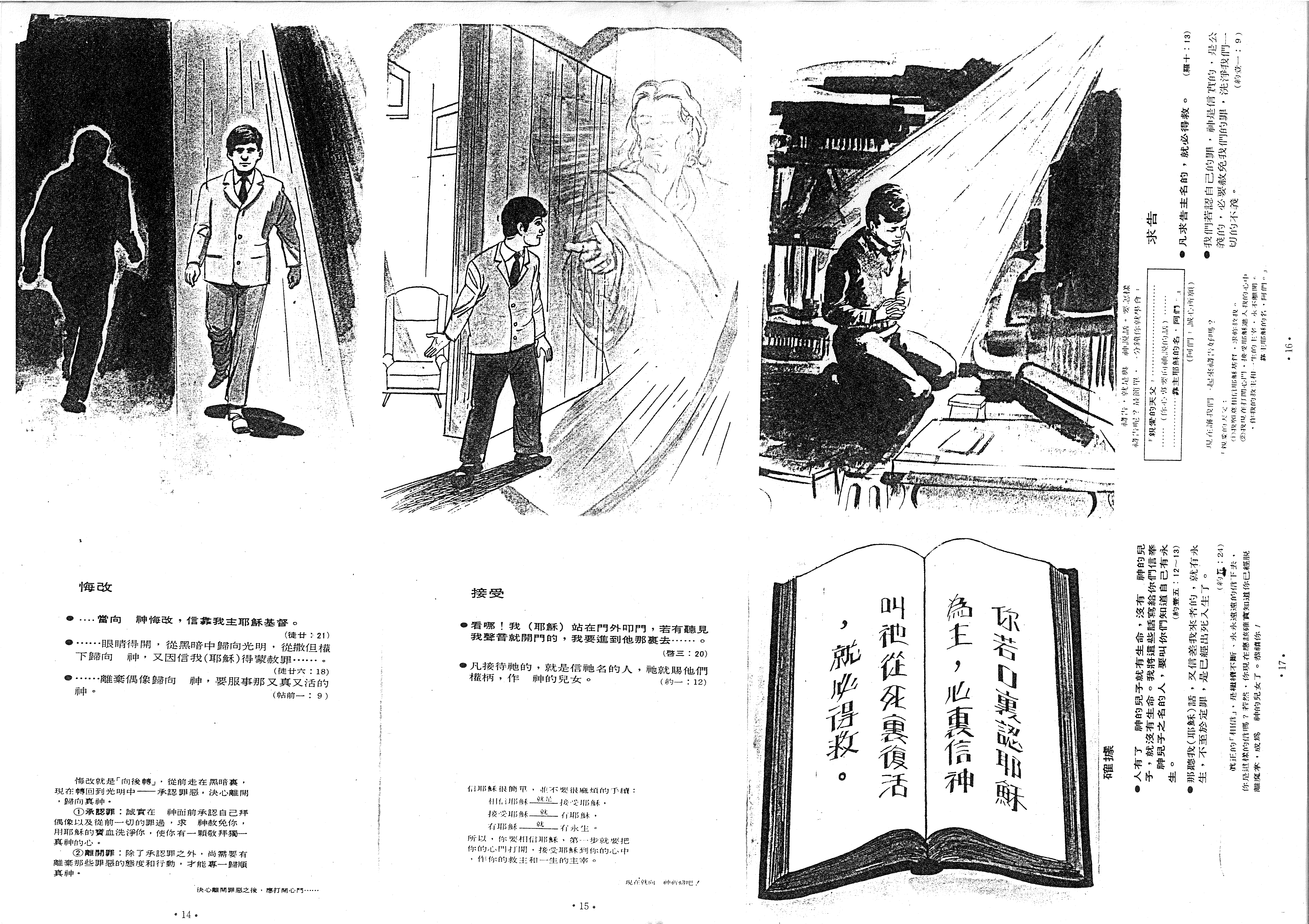 『親愛的天父: (你心裏要向神說的話) (1)我承認相信耶穌基督,求你救我。 (2)我現在打開心門,接受耶穌進入我的心中,作我的救主和一生的主宰,永不離開。 靠主耶穌的名,阿們。』 (阿們:誠心所願)