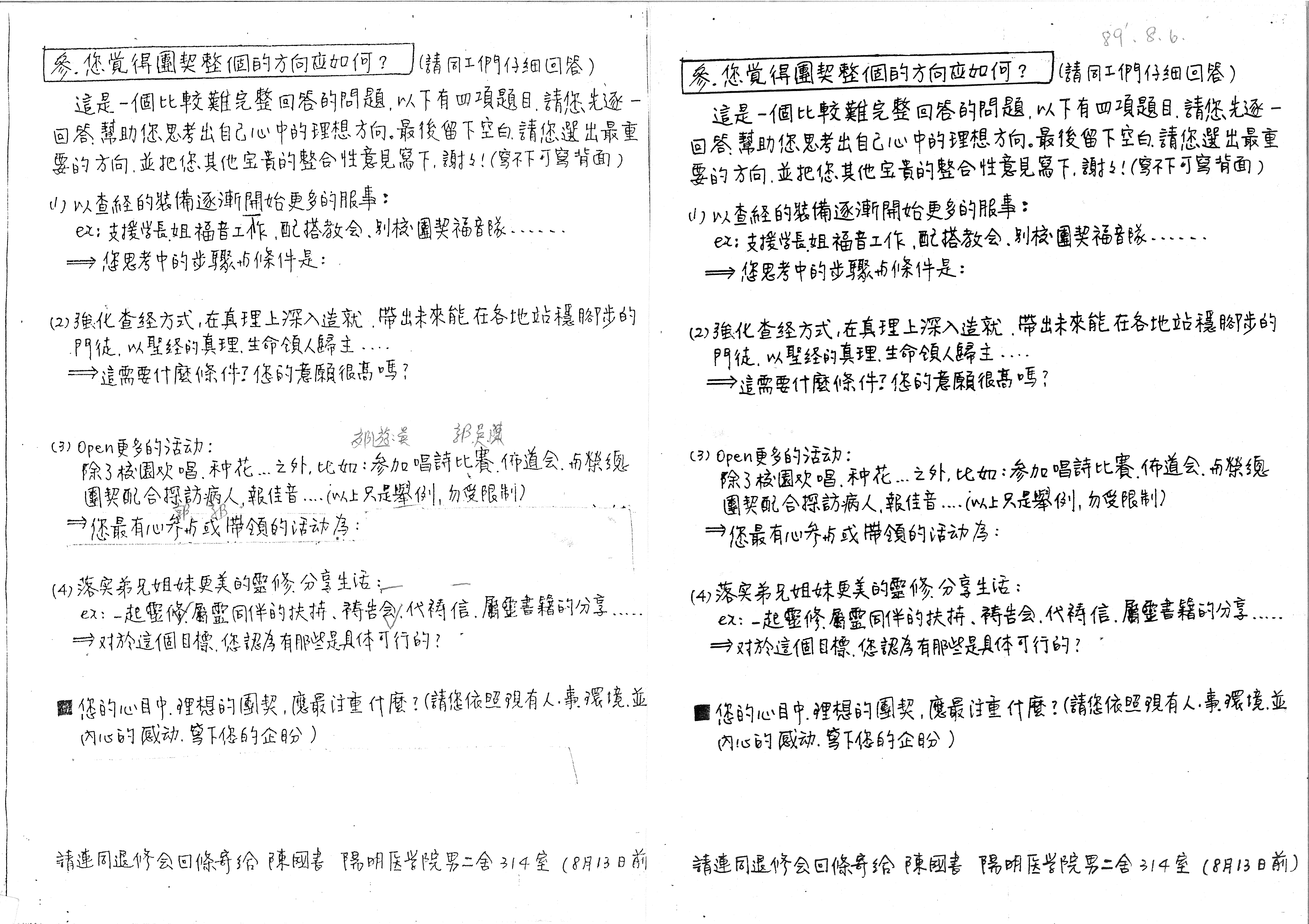 參、您覺得團契整個的方向應如何? (請同工們仔細回答)