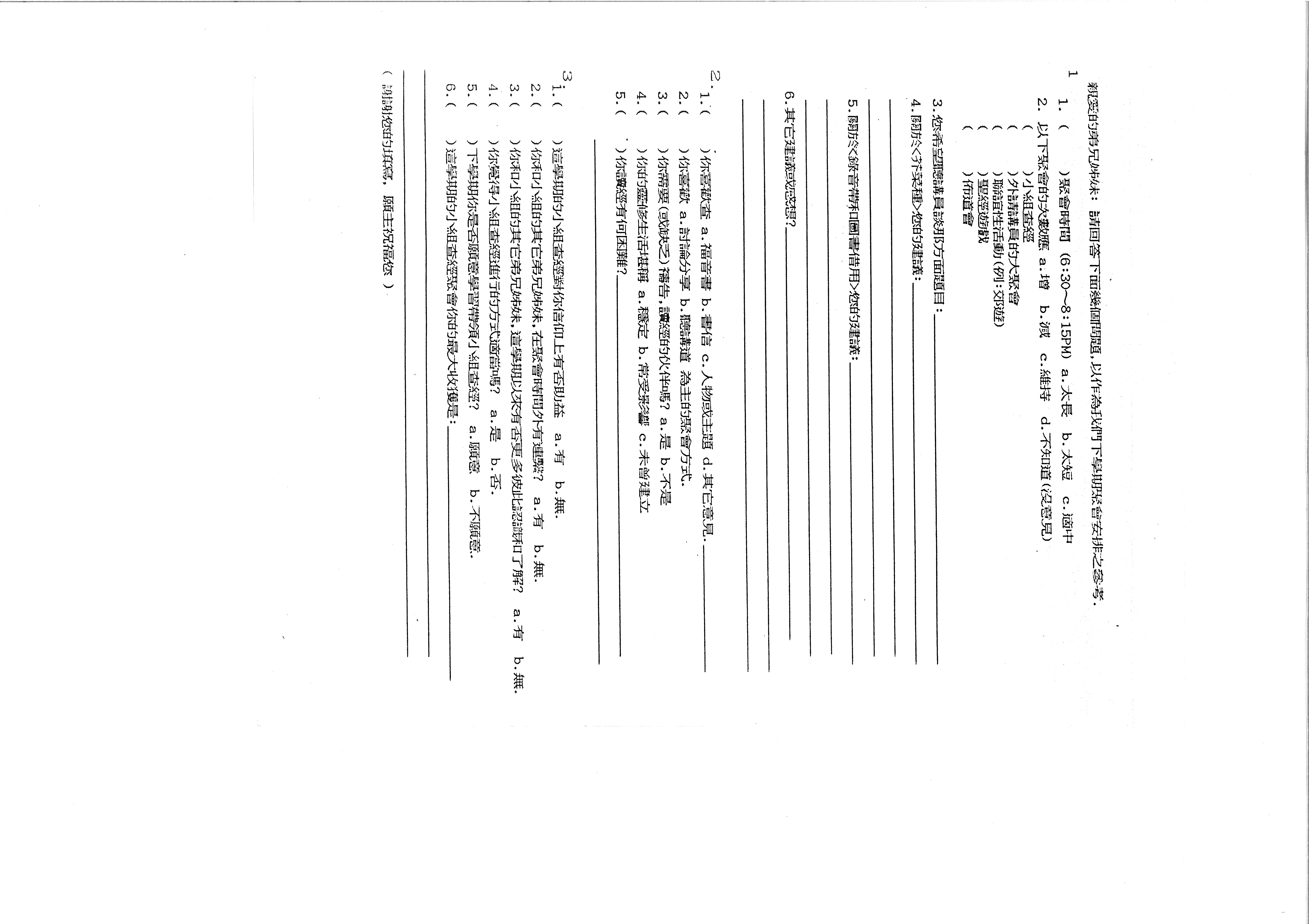 - ( )下學期你是否願意學習帶領小組查經? a.願意 b.不願意.