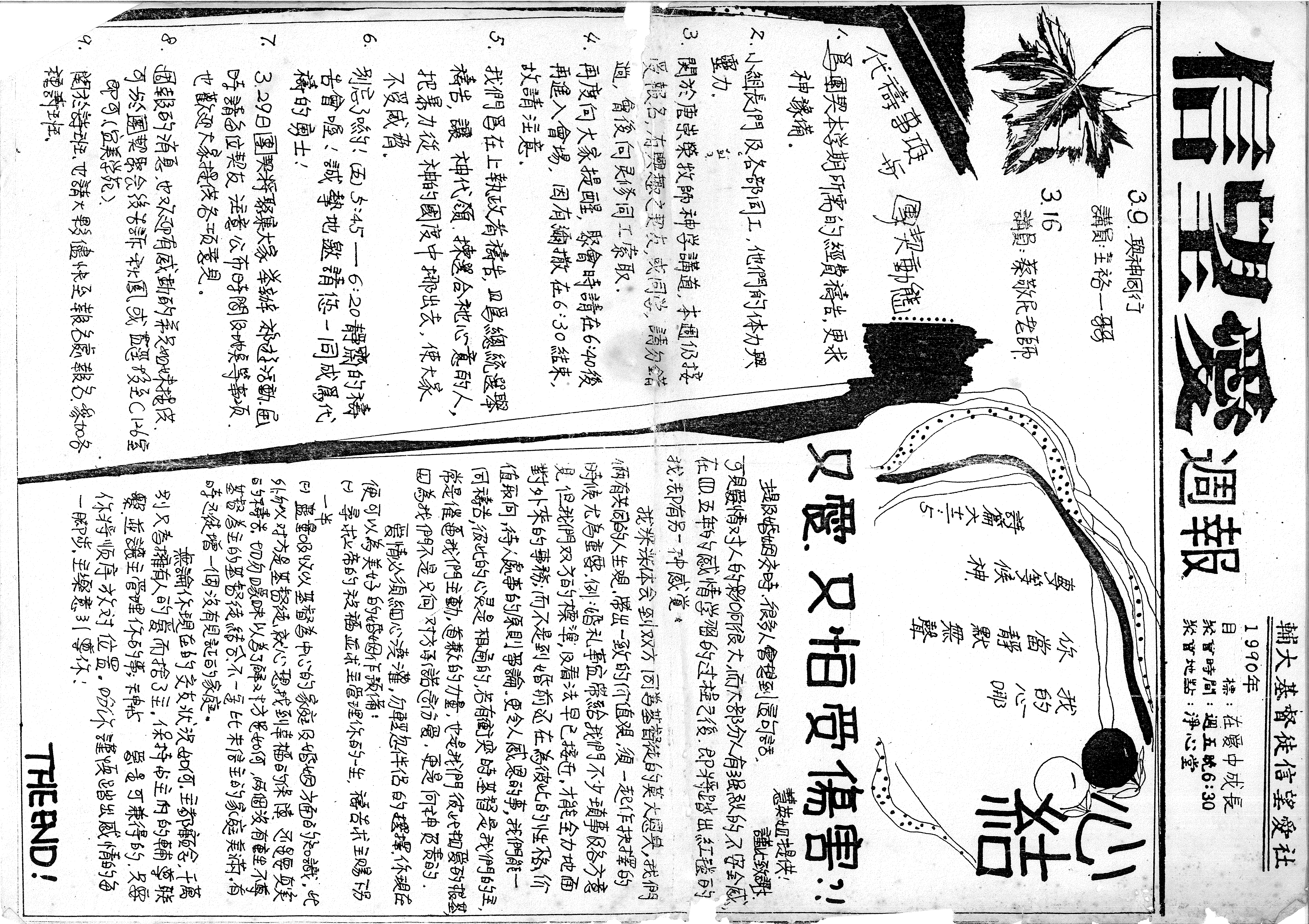1990年 目標:在愛中成長 聚會時間:週五晚6:30 聚會地點:淨心堂