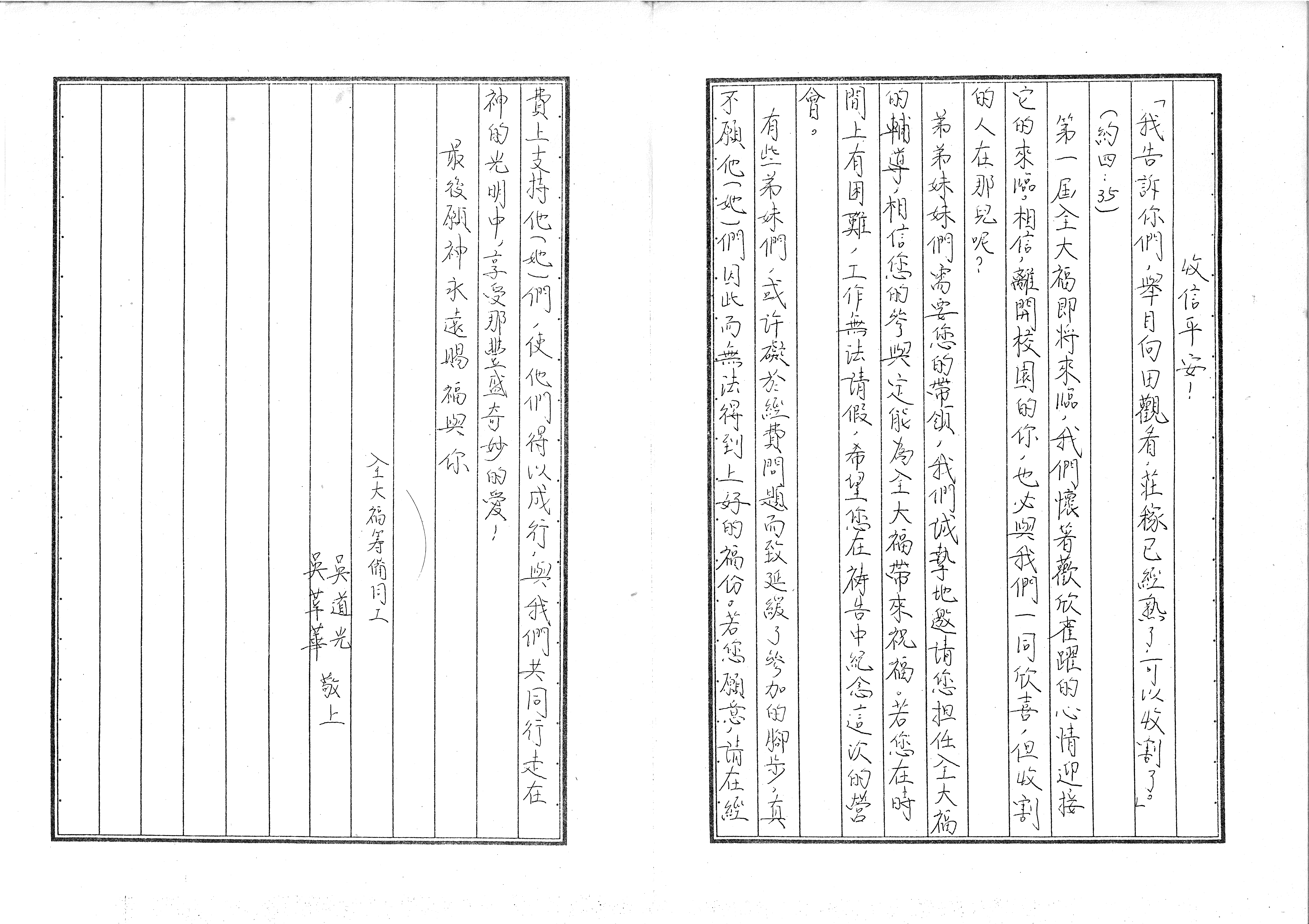 全大福籌備同工 吳道光 吳華萍 敬上