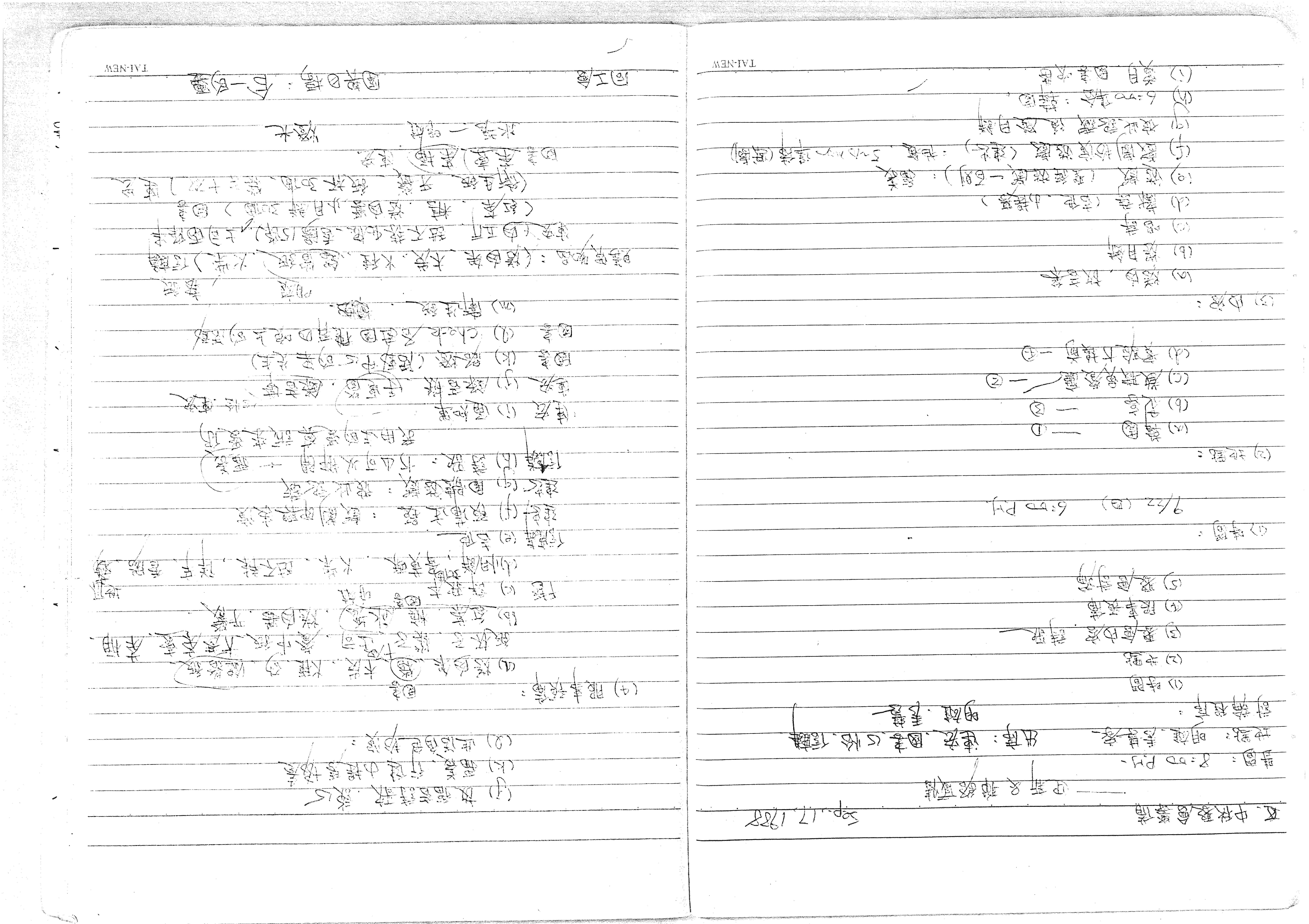 (1) 時間 9/22 (四) 6:00 P.M.
