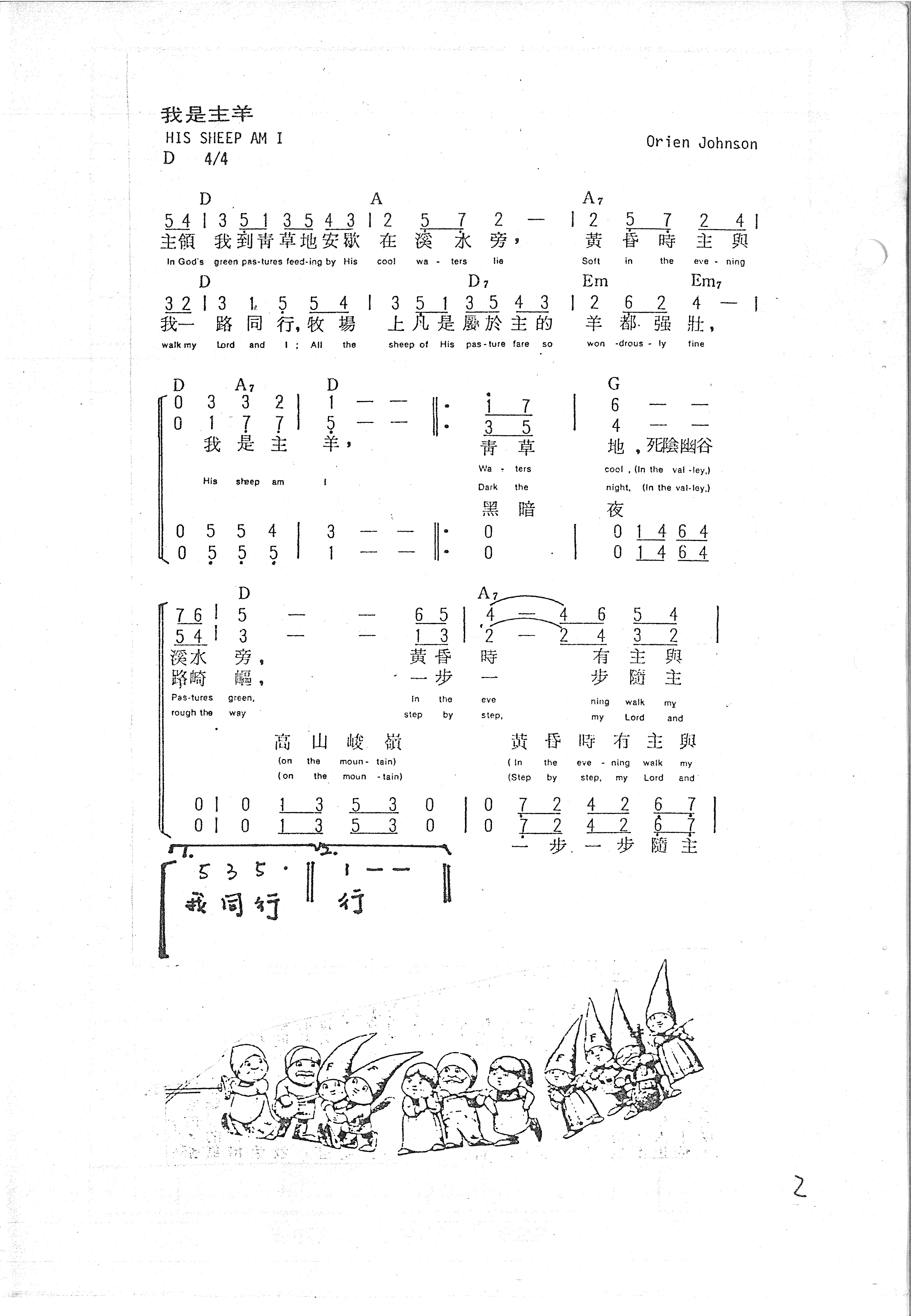 D A₇ D | 0 3 3 2 | 1 — — — :|| | 0 1 7 7 | 5 — — — :|| 我 是 主 羊, His sheep am I!