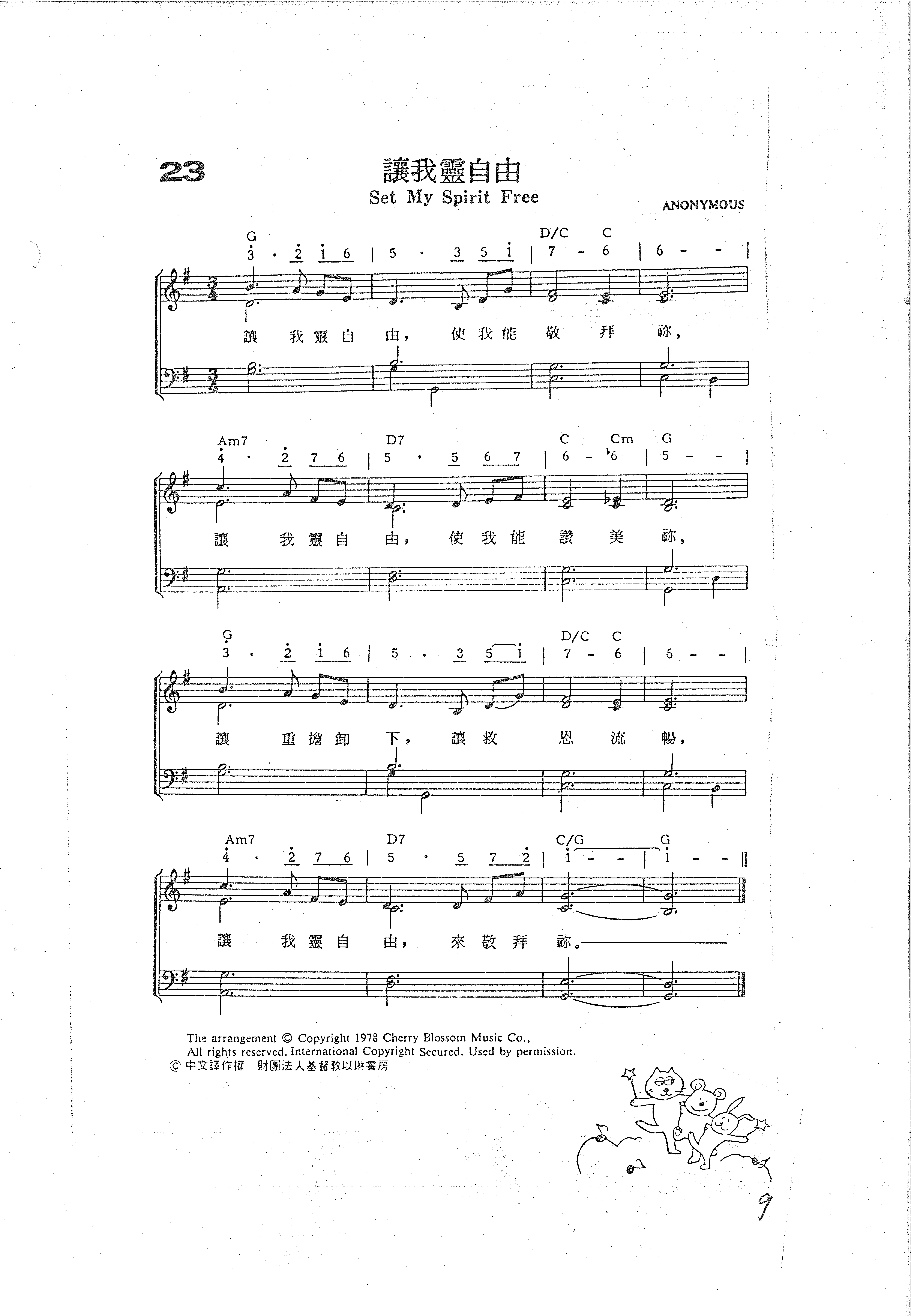 The arrangement © Copyright 1978 Cherry Blossom Music Co., All rights reserved. International Copyright Secured. Used by permission. © 中文譯作權 財團法人基督教以琳書房