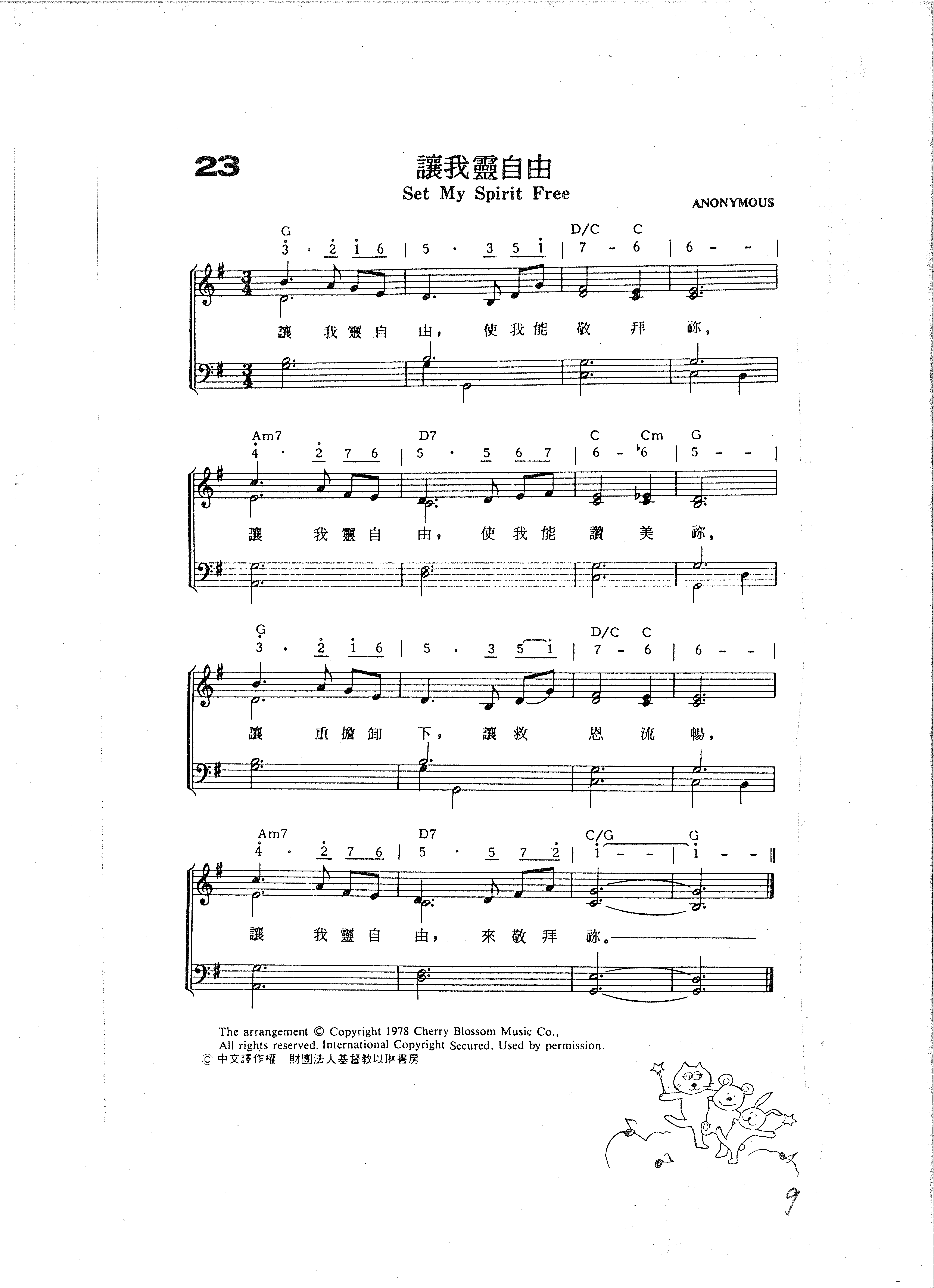 The arrangement © Copyright 1978 Cherry Blossom Music Co., All rights reserved. International Copyright Secured. Used by permission. © 中文譯作權 財團法人基督教以琳書房