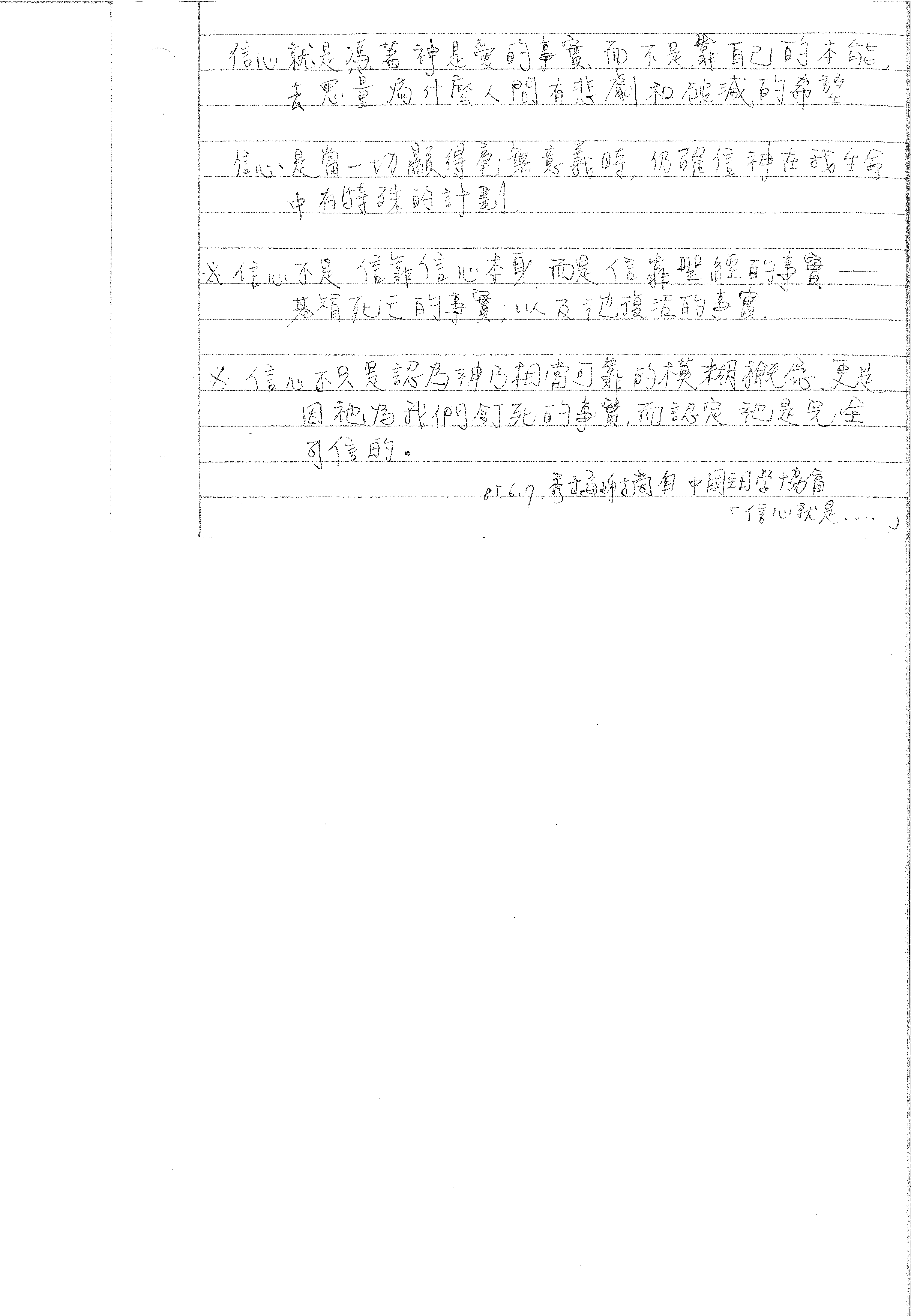 85.6.7 專題演講摘自 中國主日學協會 「信心就是....」