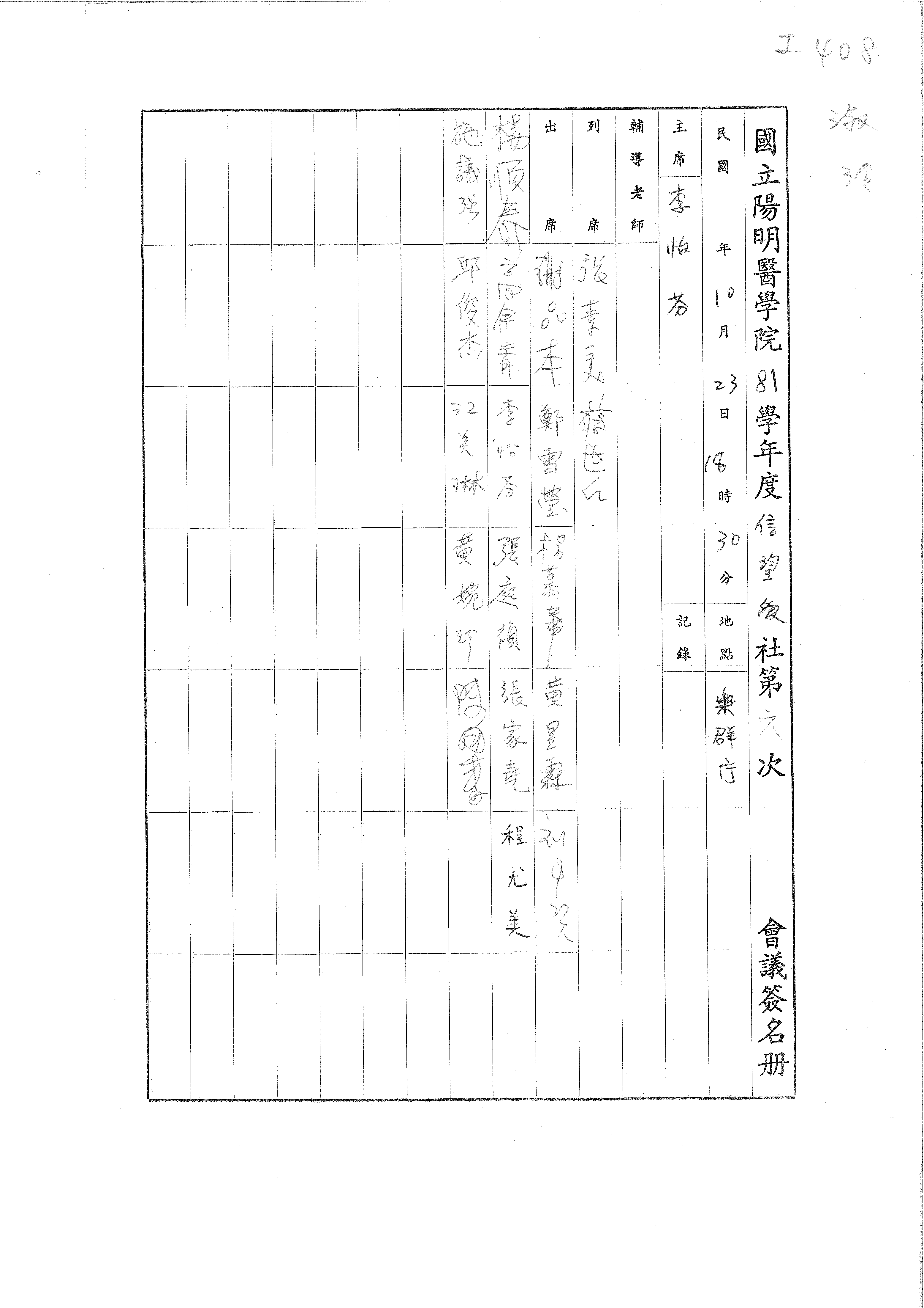 國立陽明醫學院 81 學年度信望愛社第六次會議簽名冊