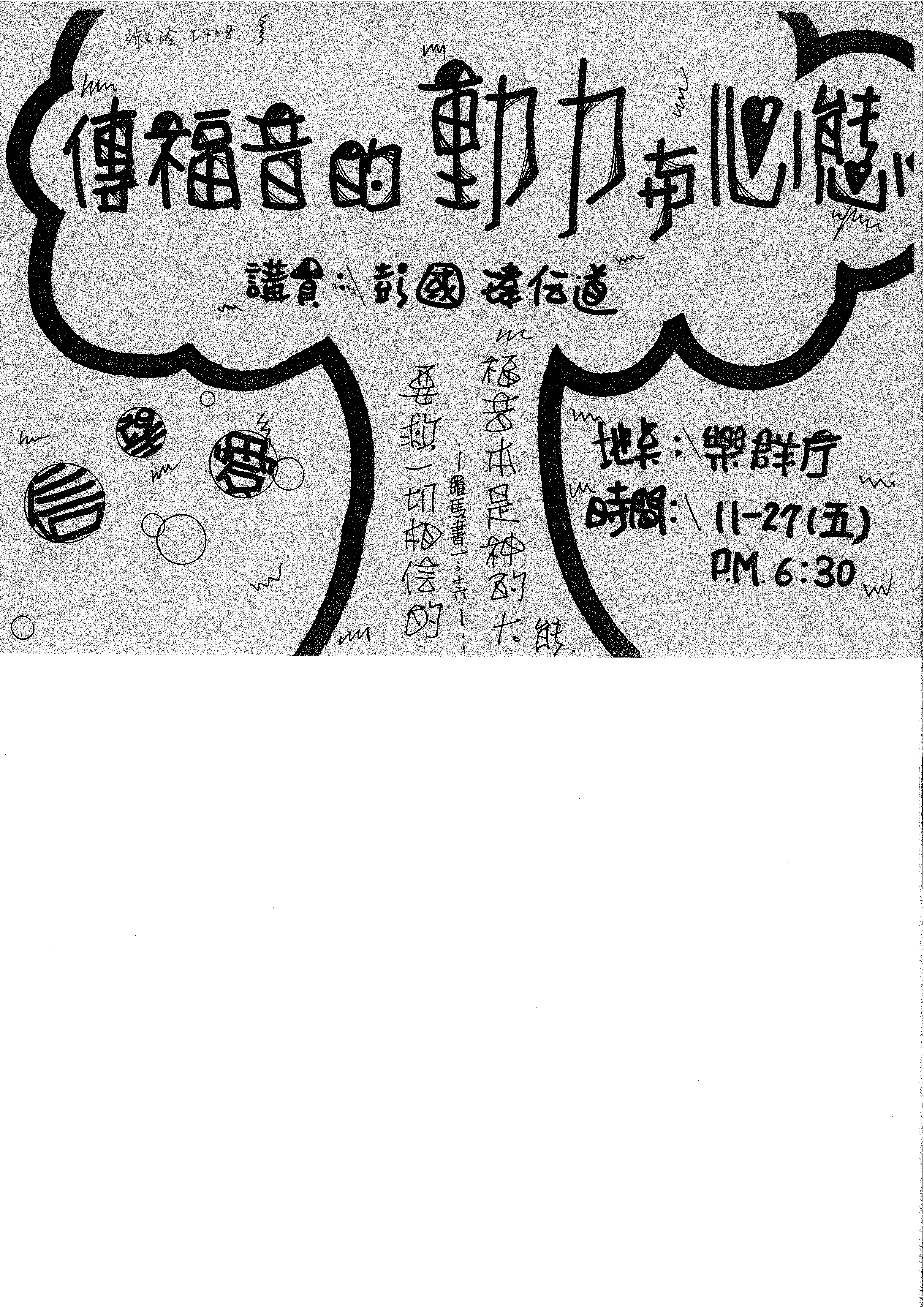 地點:樂群廳 時間:11-27(五) P.M. 6:30