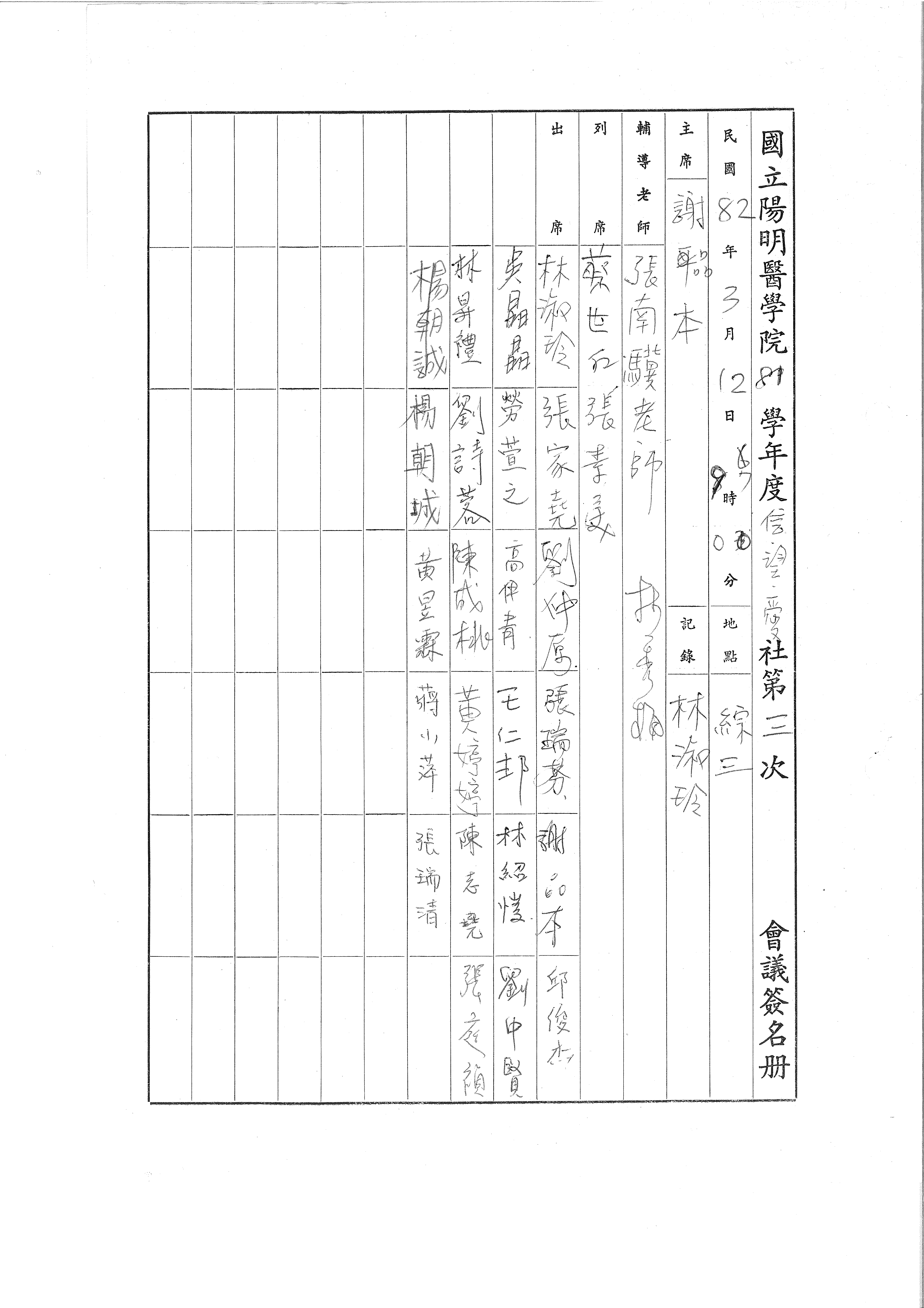 國立陽明醫學院 81學年度信望愛社第三次會議簽名册