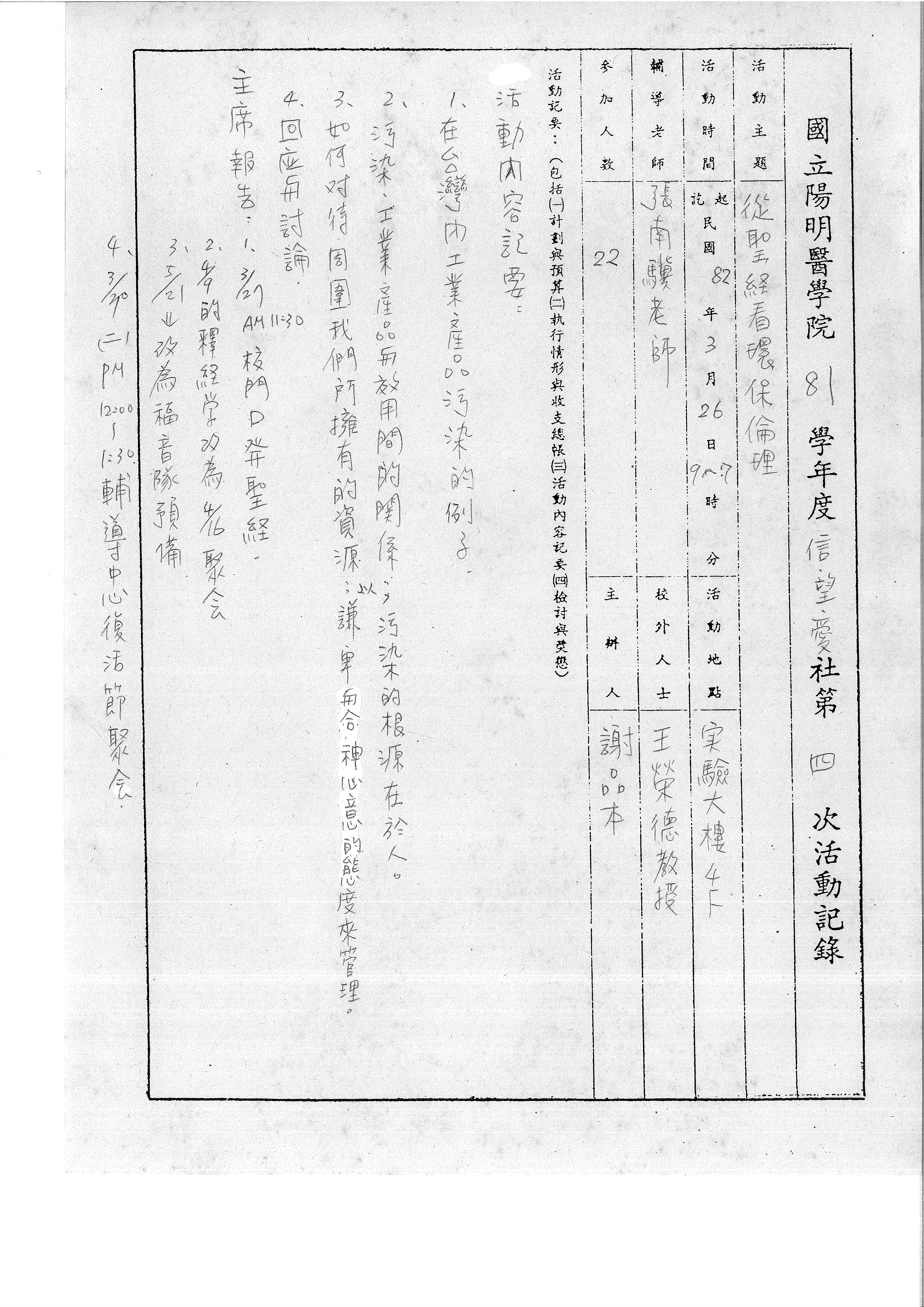 國立陽明醫學院 81 學年度信望愛社第四次活動記錄