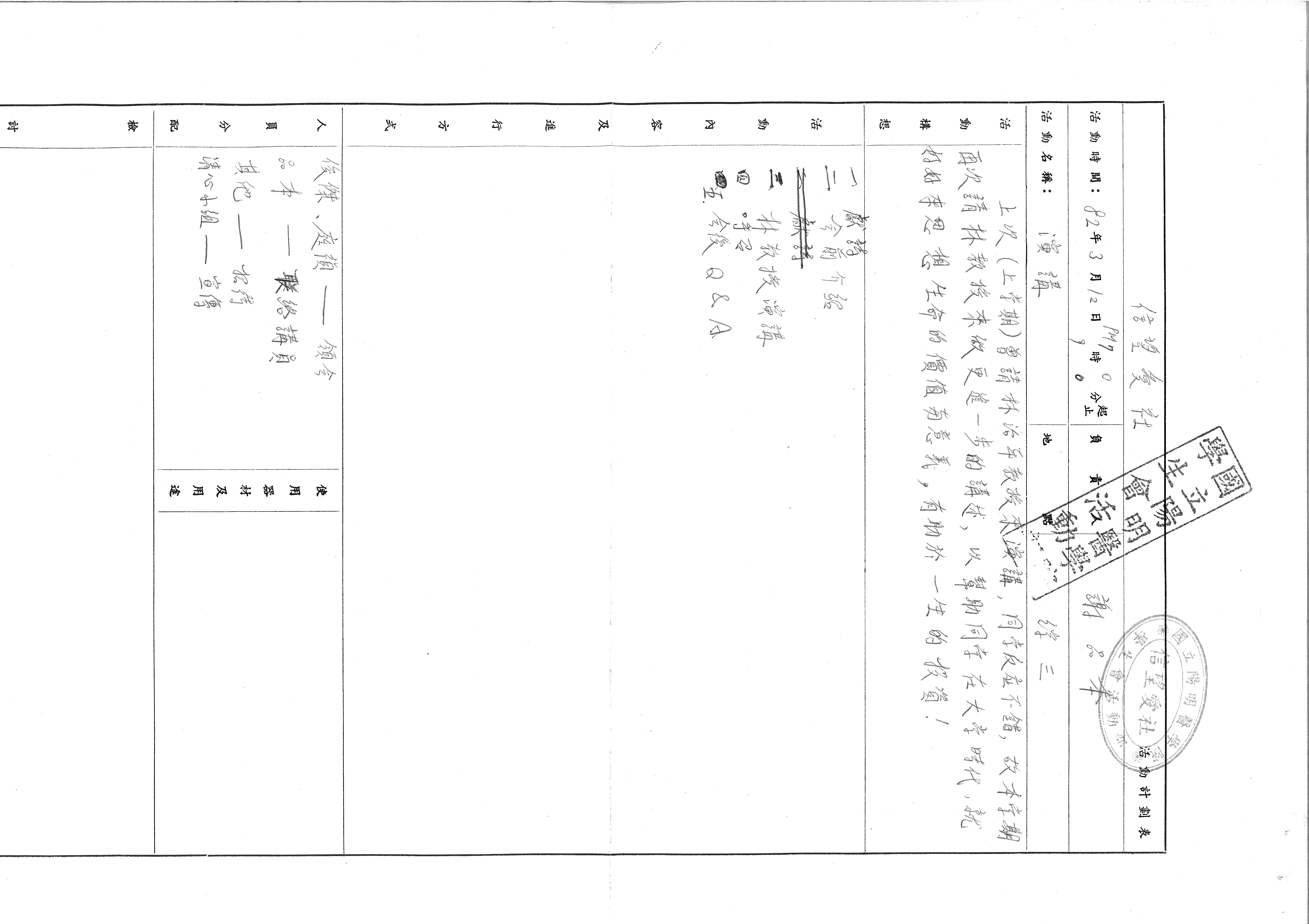 國立陽明醫學院 信望愛社 石至愛 活動計劃表