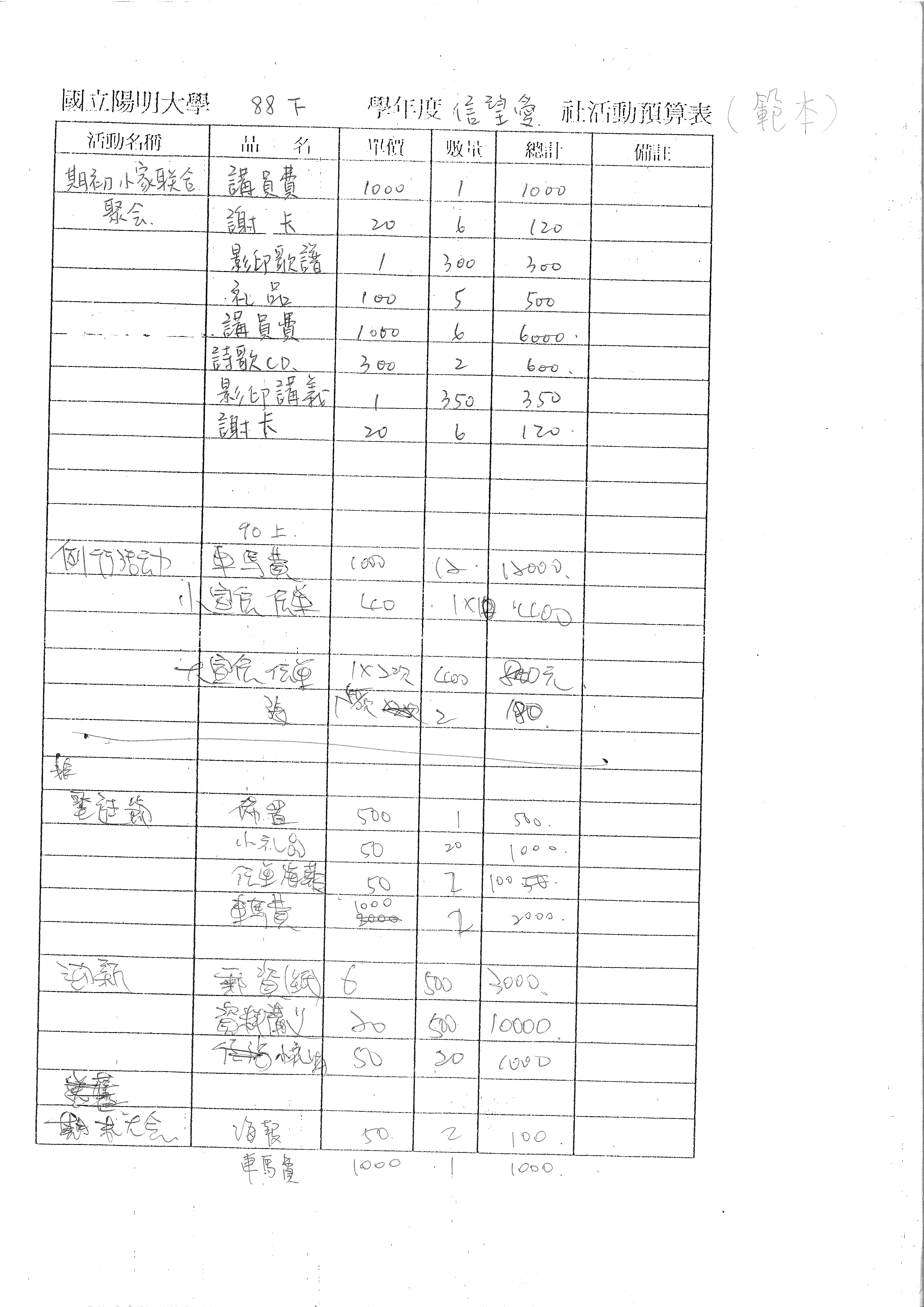 原圖 ↗ 國立陽明大學 88 下 學年度信望愛社活動預算表(範本)