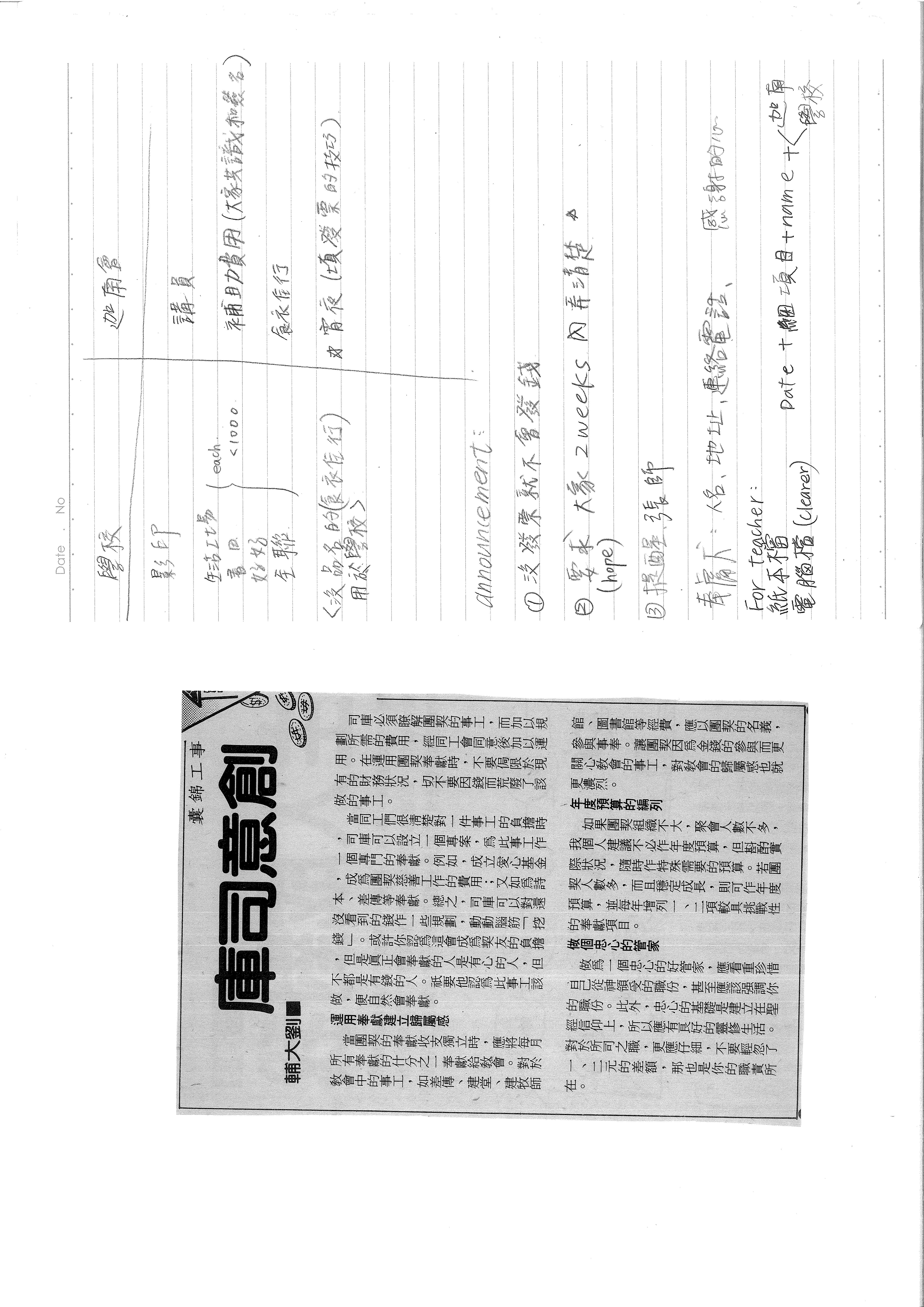 For teacher: 紙本檔 電腦檔 (Clearer) Date + 細項目 + name + <加註學校>